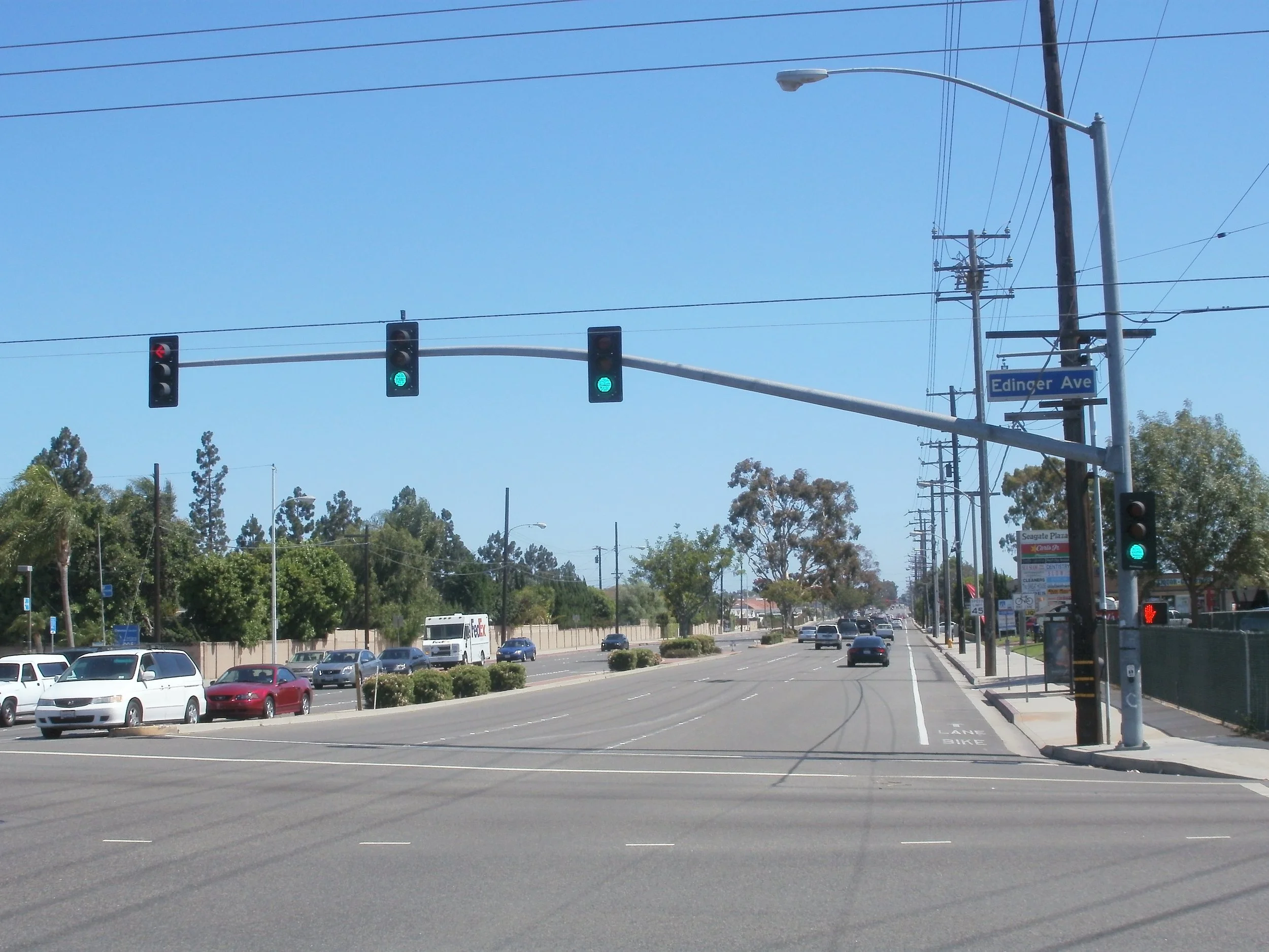 ADVANTEC completed the Traffic Signal Synchronization Project for the Orange County Transportation Authority (OCTA) along Edinger Avenue, involving 38 intersections across the cities of Huntington Beach, Santa Ana, Westminster, and Fountain Valley. The project aimed to reduce travel time, stops, fuel consumption, and emissions while improving travel speeds and overall safety. ADVANTEC developed and implemented synchronized signal timing plans for all peak periods, supporting inter-jurisdictional coordination. Infrastructure enhancements included the installation of wireless radio communication, fiber optic cable, Ethernet switches, Bluetooth monitoring devices, CCTV cameras, and additional loop detectors. The project also included repairing damaged interconnect cable and replacing controller cabinets at six intersections—ensuring long-term reliability and efficiency across the corridor.